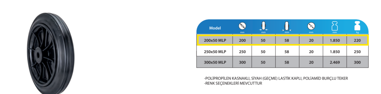 200x50 MLP Teker | Ağır Hizmet Tipi Sanayi Yük Taşıma Tekerleği