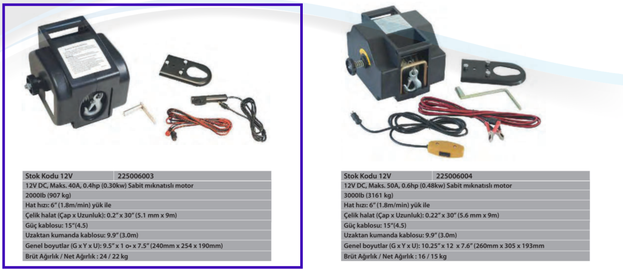 DW3 2000LB (900 Kg) 12V Akülü Vinç – BADA Araç Çeki Vinci