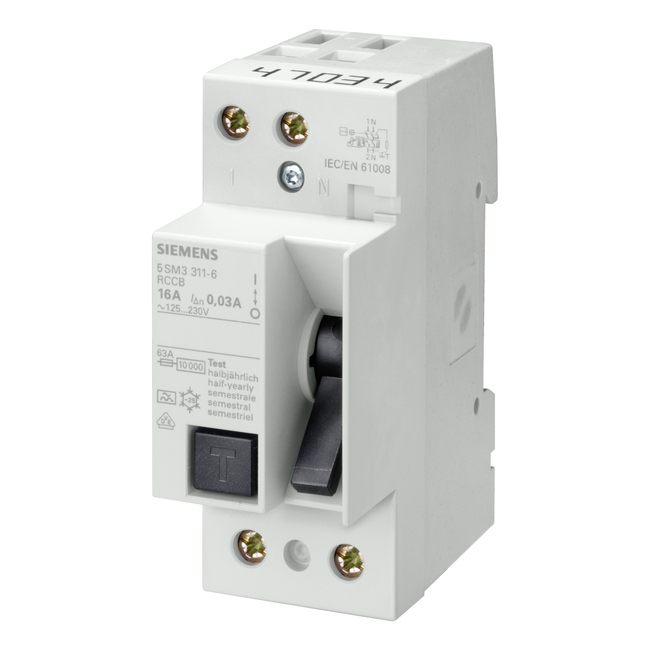 Siemens 5SM1612-0 Hata Akımı Koruma Anahtarı-Fı (Kaçak Akım Koruma Rölesi); 25A; 230V; 30Ma; Monofaze; Faz+Nötr; 55Mm